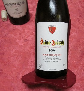Domaine Bernard Gripa Saint Joseph 2006 Domaine Bernard Gripa Saint Joseph 2006, Northern Rhone, France ($42.90). This wine has had 6 years of aging, and shows you that you can age your white wines. This one is a blend of Marsanne, Viognier, and Roussanne. With age it is medium golden in colour. Honey, butterscotch and marmalade on the nose. Medium plus body, round, with tropical fruit and dried orange peel flavours. It would be interesting to buy this one and maybe a younger vintage to see how the wine can change over time.