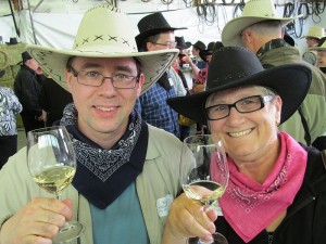 Stepping off the bus, myself and the other media people, went into a large shed where there was a line of people waiting to fit us for a cowboy hat and a bandana. After that the two white wines awaited our tastebuds.