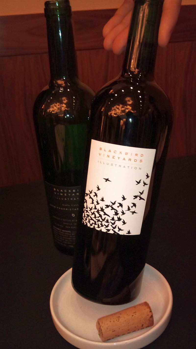 Blackbird Vineyards Illustration Blackbird Vineyards, Illustration, Napa Valley, 2009 ($149). This is a Bordeaux blend of 81% Merlot, 16% Cabernet Franc, and 3% Cabernet Sauvignon. Blackbird Vineyards downplays Cabernet Sauvignon, and promotes Merlot and Cab Franc in their wines. They like to produce a “Right Bank” style Bordeaux blend. As such their wines I think would be rounder, softer, with more fruit than a Left Bank Bordeaux blend. This wine had cassis and vanilla aromas, full body, dry with firm tannins, and dark cherry on the palate.