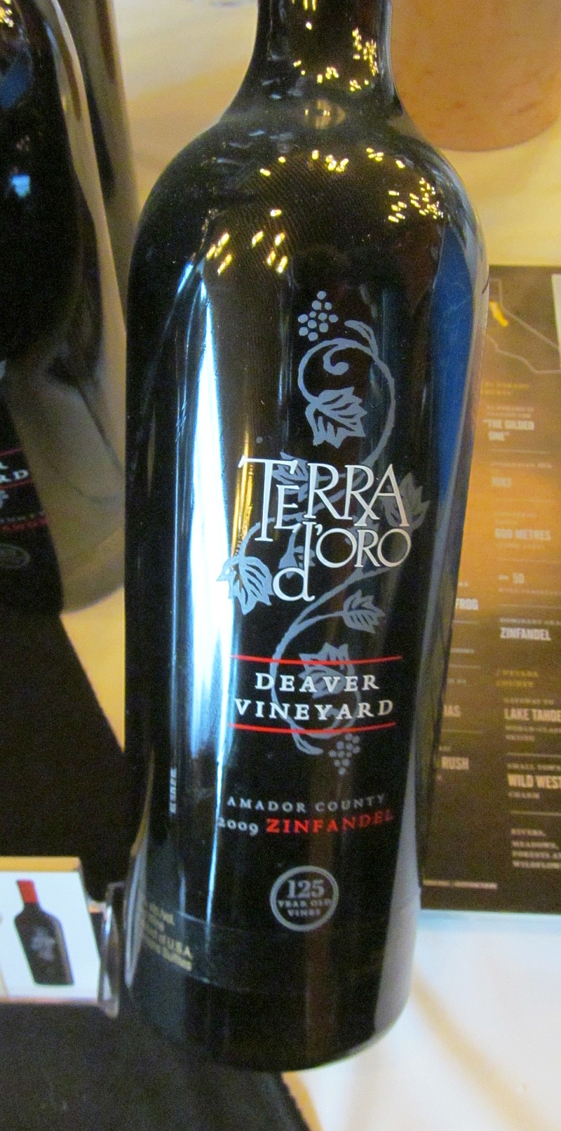 - Terra d’Oro Winery Deaver Ranch 125 Year Old Vine Zinfandel 2009. Medium translucent garnet in the glass. Classic jammy nose with vanilla. Full body, dry with soft tannins and some minerality. Raspberry and red cherry flavours. Medium acidity. Nice.