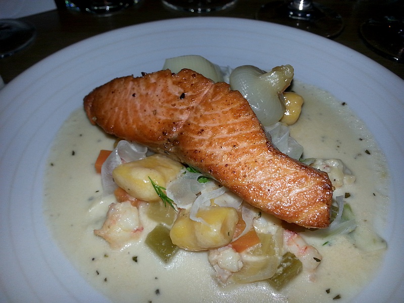 - Pacific Provider spring salmon on poached leeks and cipollini onion, squash gnocchi, and humpback shrimp “chowder”