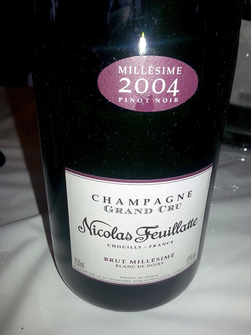 - Nicolas Feuillatte Grand Cru Blanc de Noirs 2004 – Light stone fruit aromas in the glass. Medium minus body, dry but very fruity. Red fruits and apples on the palate along with a mineral streak. Wonderful.