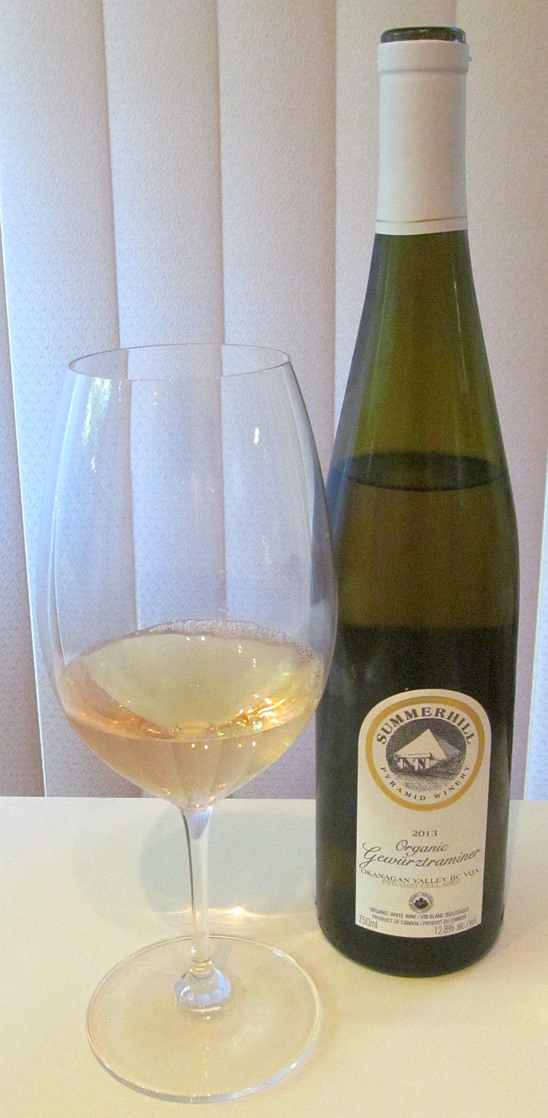 Summerhill Organic Gewurztraminer 2013 ($19.95) – Pear skin in colour, this wine has a youthful aroma, with lychee most, followed by sweet spice/cardamom, baked apple, and a hint of flowers; classic Gewurz nose. Dry and very flavourful with medium plus acidity. Pears, baked apple, and hints of red cherries / apricots / and pepper on the palate. You get an acidic spicy prickle on the tongue from this wine. It is really round and has a nice, heavier mouthfeel. Peaches on the finish, along with higher acidity gives you a clean, fruity finish. This wine is ready to drink now, but I would suggest holding a bottle or two for 3-4 years of cellar aging, as I think it is interesting now, but will become even more complex in the future.