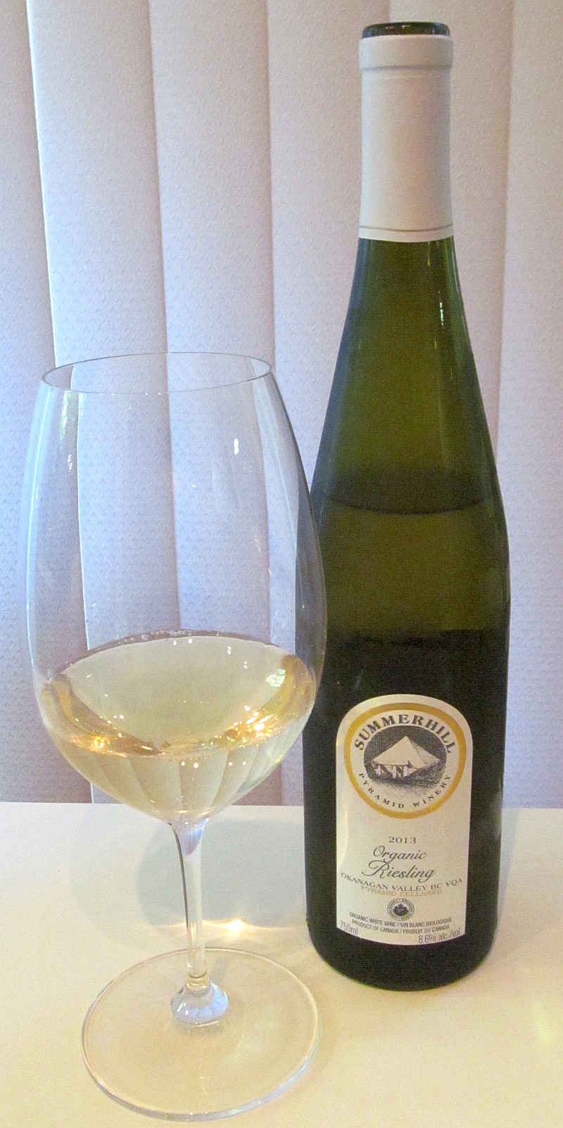 Summerhill Organic Riesling 2013 ($19.95) – Medium lemon in colour with a clean, youthful nose of citrus, honeydew melon, stone fruit and apples. With a very low alcohol content at 8.6%. this leaves a bit of residual sugar, and gives you a medium-dry wine. This wine has medium plus acidity which helps to balance out the extra sweetness. I really liked the flavours in this wine of green apple, pear and a hint of lime and honey. The apple and pear flavours in particular didn’t fade and stretched from first touching your lips till you swallowed. I also noted a bit of mineral backbone in this wine. It finishes off dry with green apple. You don’t notice the higher acidity till the finish, due to the medium sweetness of the wine. It was overall quite soft and round in your mouth and made a very pleasant wine to drink. A recommended wine for this summer.