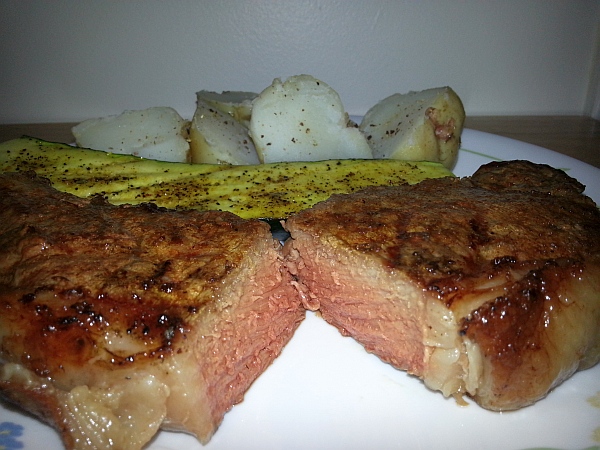 I followed the instructions exactly as outlined, but did apply two light spices to the steaks. One I sprinkled a garlic scape salt, and the other a light Cajun blend of spices (which I bought in New Orleans). Applied to only one side of the steaks.