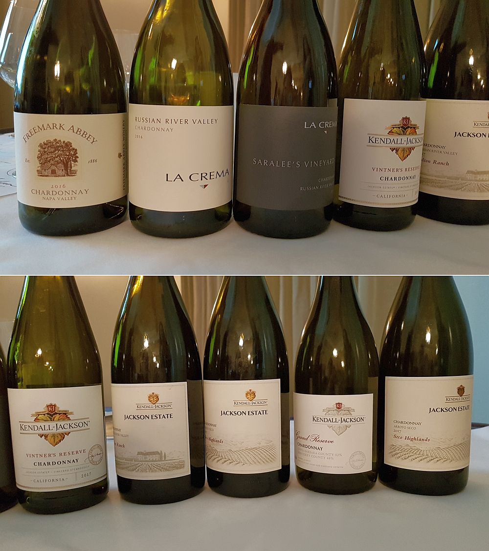 The above labels are all part of the Jackson Family of Wines. The winemaker for these wines, Randy Ullom, provided us with background on each wine, including the County the grapes were sourced along the coast, length of barrel aging, type of barrel (e.g. French oak), age of barrel (new or used), and if the wine also went through a secondary malolactic fermentation, to soften the malic acids in the wines, and turn them into the more buttery lactic acids.
