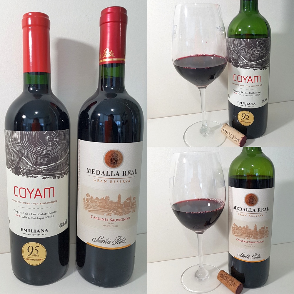 I purchased these two Chilean wines from Everything Wine to start my virtual celebration. The first is Viña Santa Rita Medalla Real Gran Reserva Cabernet Sauvignon 2016 and the second is Viñedos Emiliana Organic Vineyards COYAM 2018. I picked these two wines as they both contain Cabernet Sauvignon. The Santa Rita is 95% Cabernet Sauvignon, while the COYAM is a Syrah dominant blend with lesser Cabernet Sauvignon. I also chose to highlight Cabernet Sauvignon as it is known as the King of the red grapes in Chile.