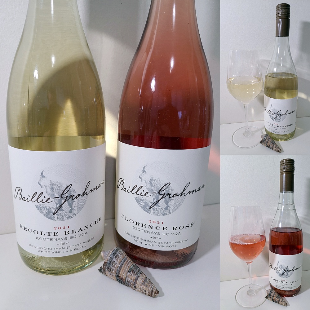 The two wines I picked to pair are the Baillie-Grohman Estate Winery Florence Rosé 2021 and the Récolte Blanche 2021. The Rosé is made from Pinot Noir grapes while the Recolte Blanche is a white blend from French and German grapes. The Rosé is dry while the blend is a bit sweeter than off-dry.