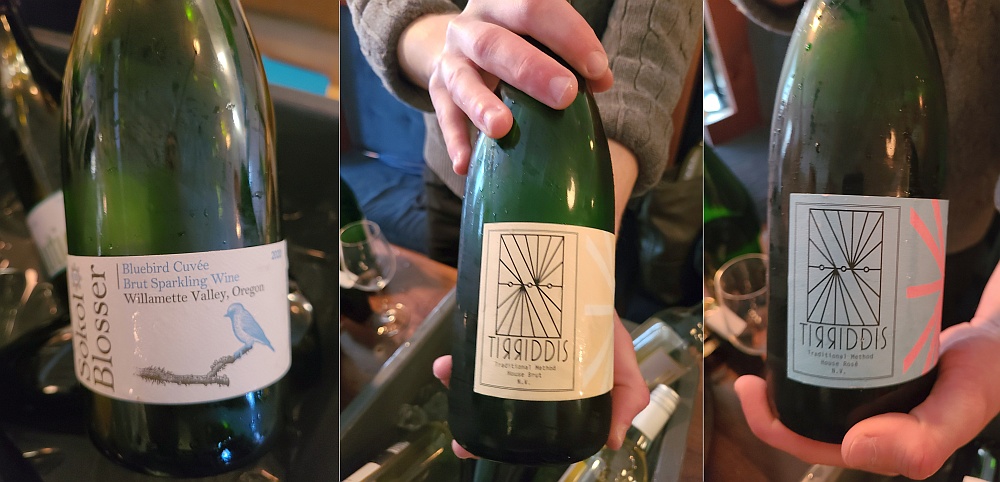 Sokol Blosser Bluebird Cuvee Brut Sparkling Wine 2020, OR – Light nettles aroma. Dry, medium body with medium-sized bubble. Acidic backbone. Light green fruit flavour.