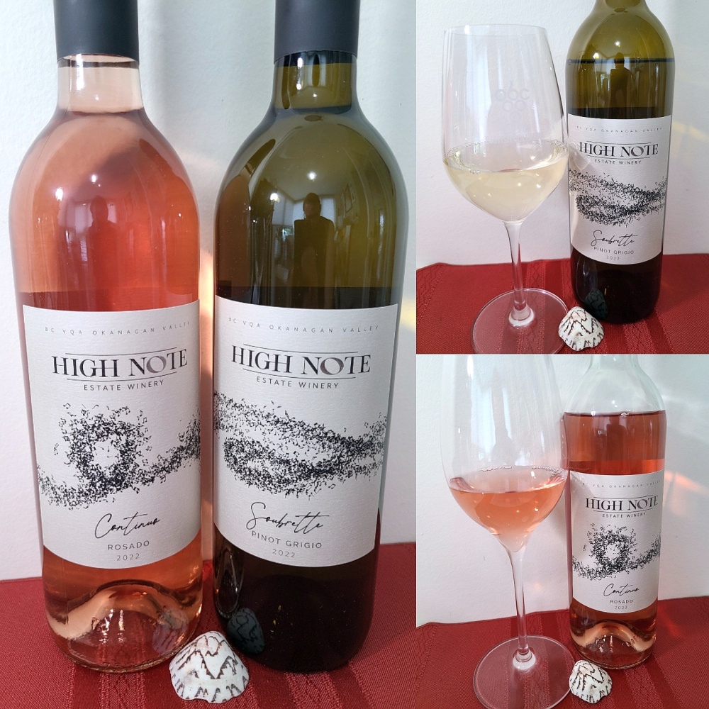 August 10, 2023, was the Grand Opening of the High Note Estate Winery, a new Mediterranean-inspired property located on the Naramata Bench. The winery is surrounded by a small three-acre picturesque vineyard, planted predominantly to Pinot Grigio. The winery will present a taste of the Mediterranean through wines influenced by the vibrant seaside villages of Italy. The wines are made under the direction of well-regarded consulting winemaker Pascal Madevon. I received two bottles of wine from the winery to review. I received their High Note Soubrette Pinot Grigio 2022 and their Continuo Rosado 2022 to taste and they did not disappoint. Let me tell you about them.
