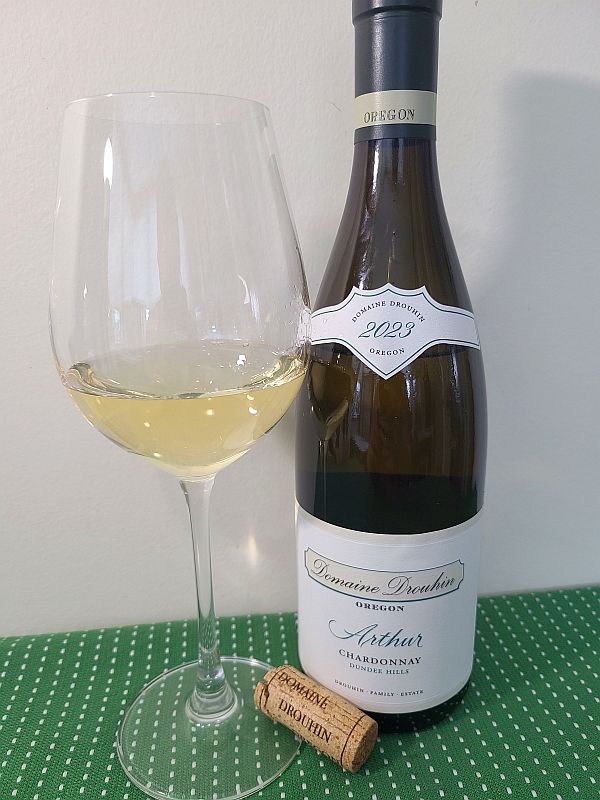 I have a bottle of the Domaine Drouhin Arthur Dundee Hills Chardonnay 2023 to review for you today. 135 acres of their vineyard are under vine and are certified sustainable by L.I.V.E. As it is from Oregon, at the moment, the wine is not available for purchase. Hopefully, the tariff wars will end soon, and we will be able to enjoy wines from our blue state west coast neighbour. Arthur refers to Véronique Drouhin’s son.