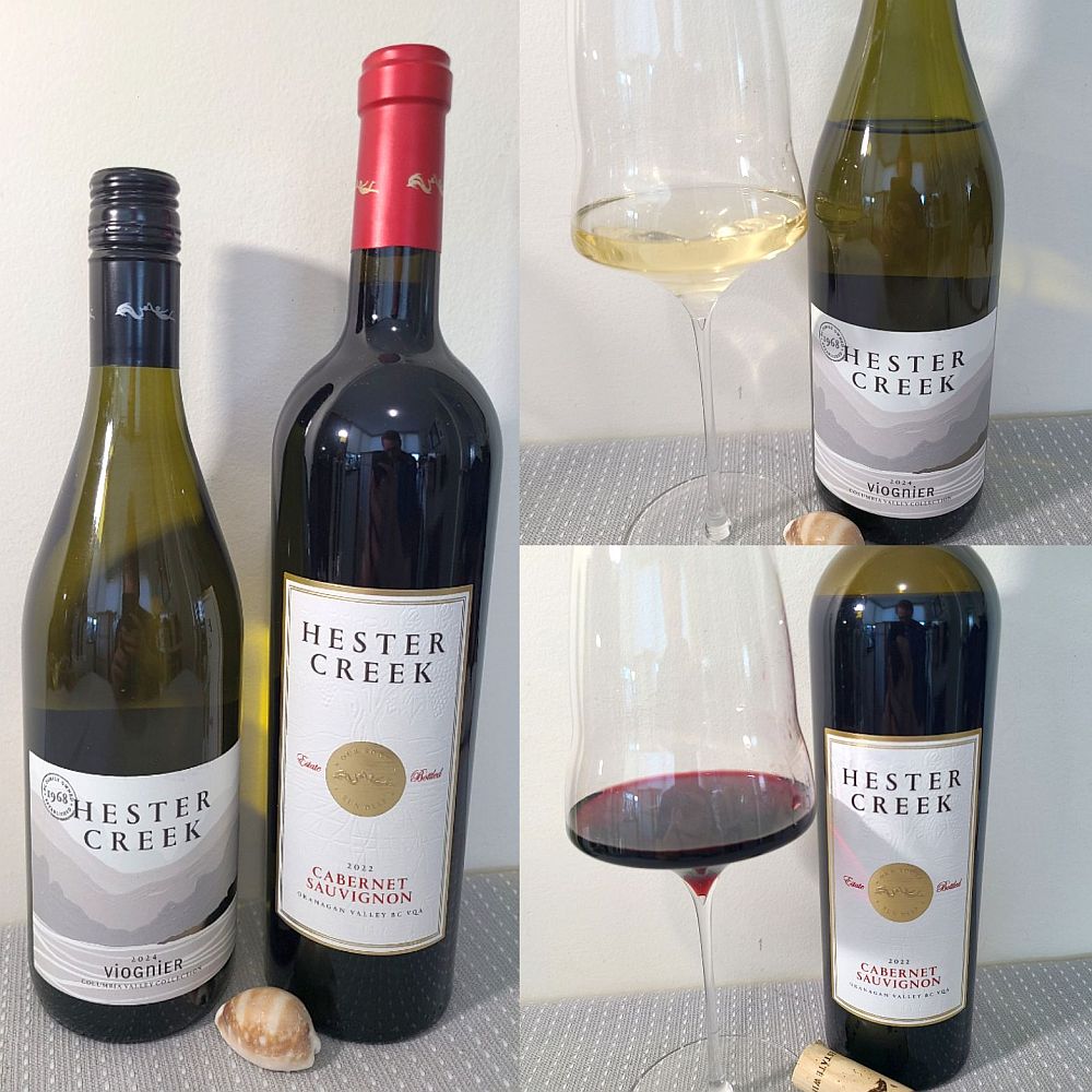 Here are two more delicious wines that you should buy and enjoy right now while we are drowning in our winter rains, or snow, in BC. The two wines from the Okanagan’s Hester Creek Estate Winery are their Columbia Valley Collection Viognier 2024 (grapes coming from WA state), and their Cabernet Sauvignon 2022 (grapes coming from estate fruit). I bought these two wines on my trip to the south Okanagan this past Fall 2025.